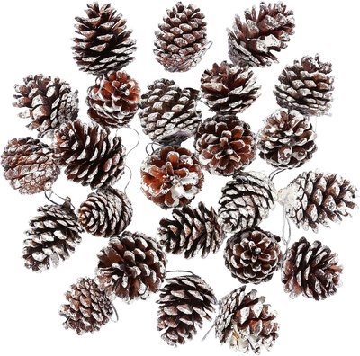 24 Ornements pommes de pin naturelles avec ficelle pour suspendre au sapin de Noel