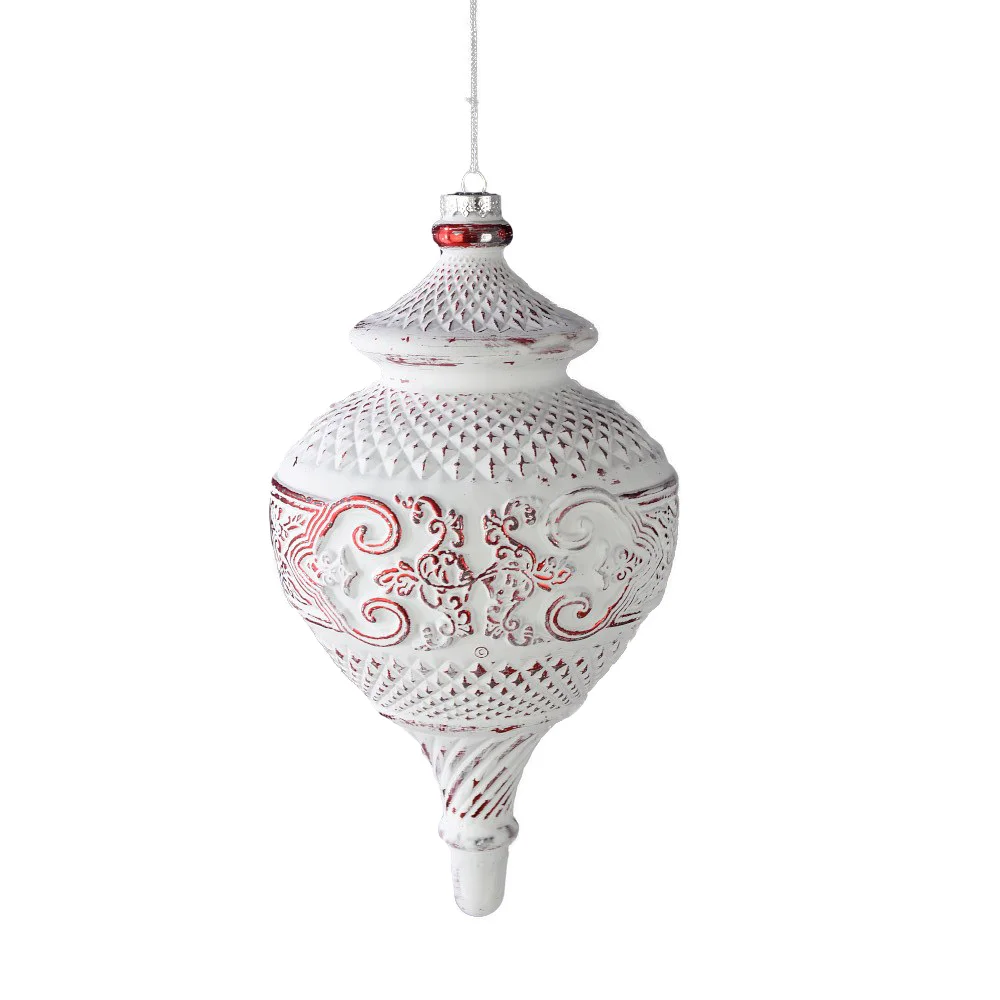 Ornement pour sapin de Noël fleuron rouge et blanc mesurant 10” de style antique