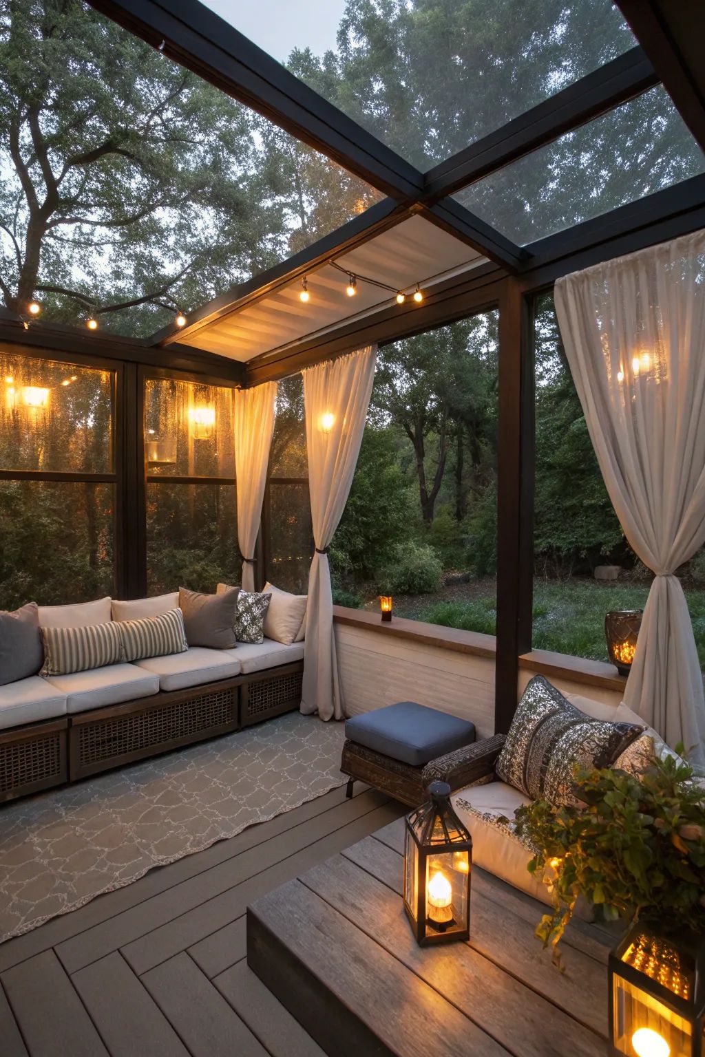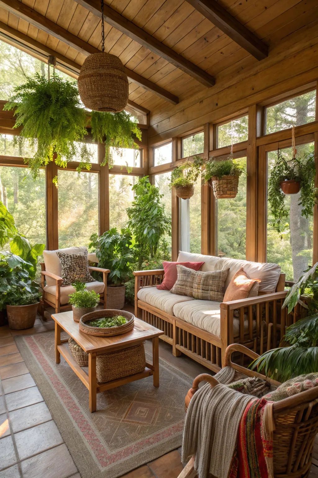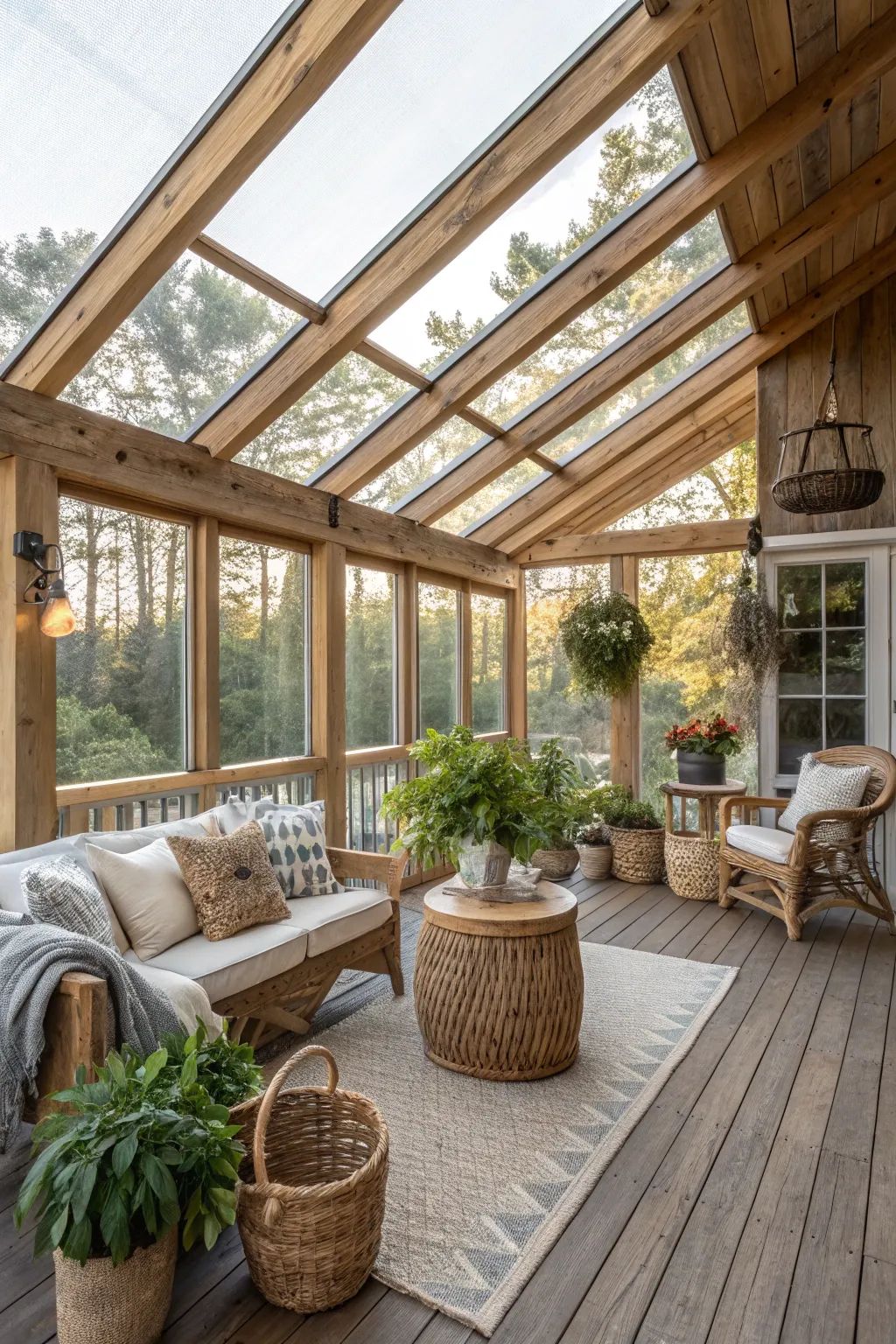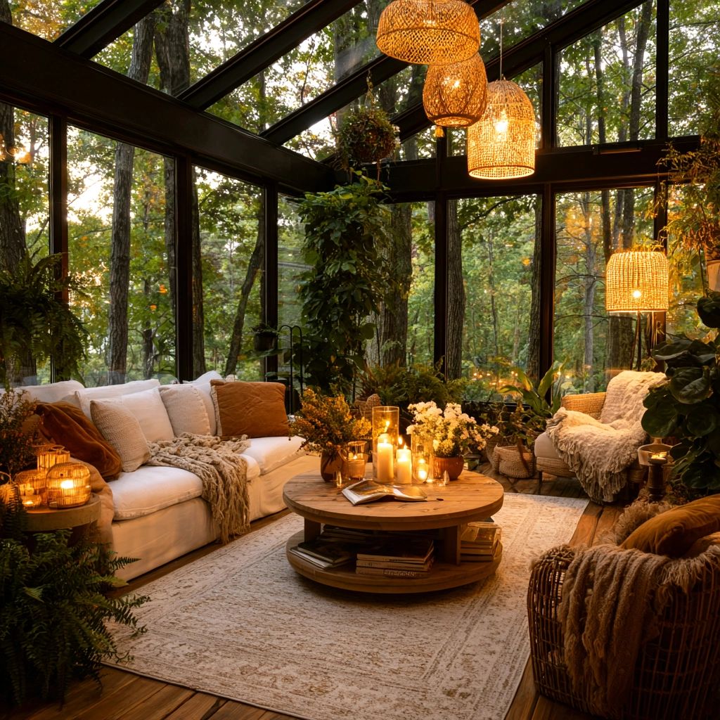Grâce à un design isolé trois ou quatre saisons, ces espaces deviennent de véritables pièces à vivre, confortables peu importe la météo. On y ajoute souvent un poêle à bois, des plantes d'intérieur ou des meubles en rotin pour une touche cozy. -