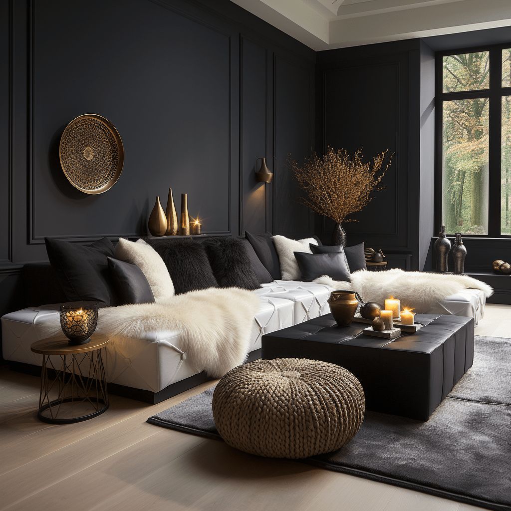 Avec des murs foncés ou un mur accent noir mat, le salon devient un vrai cocon. Ajoute-y des textiles doux, un éclairage chaleureux, et hop ! T'as une ambiance digne d'un magazine de design.
