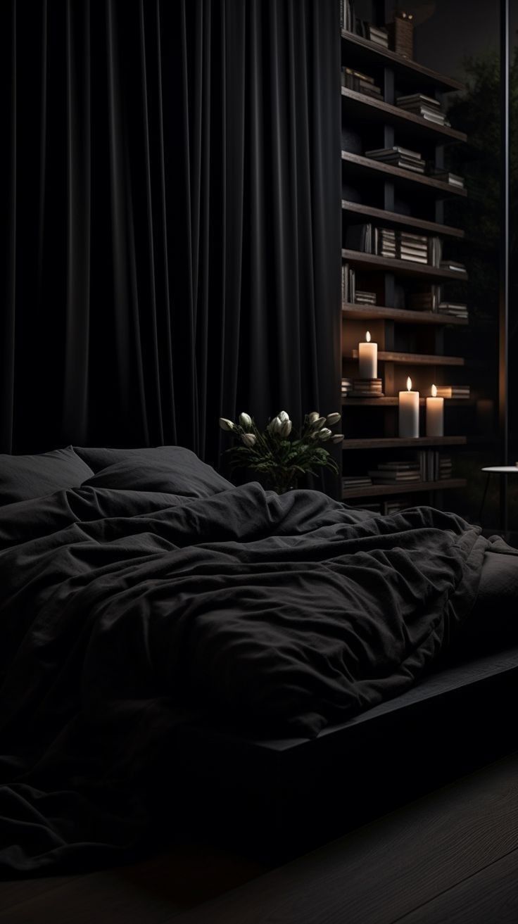 Le noir apaise, absorbe la lumière et crée une atmosphère feutrée. En l'utilisant sur un mur derrière le lit ou dans les accessoires, on obtient une chambre relaxante et ultra stylée.
