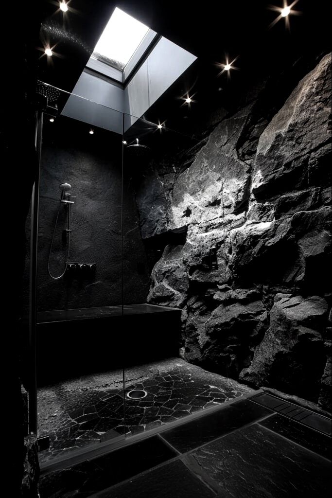 Tu veux que ta salle de bain ait du caractère ? Le noir, combiné à des finis mats ou à des matériaux naturels comme le bois ou la pierre, donne un résultat digne des plus grands spas.