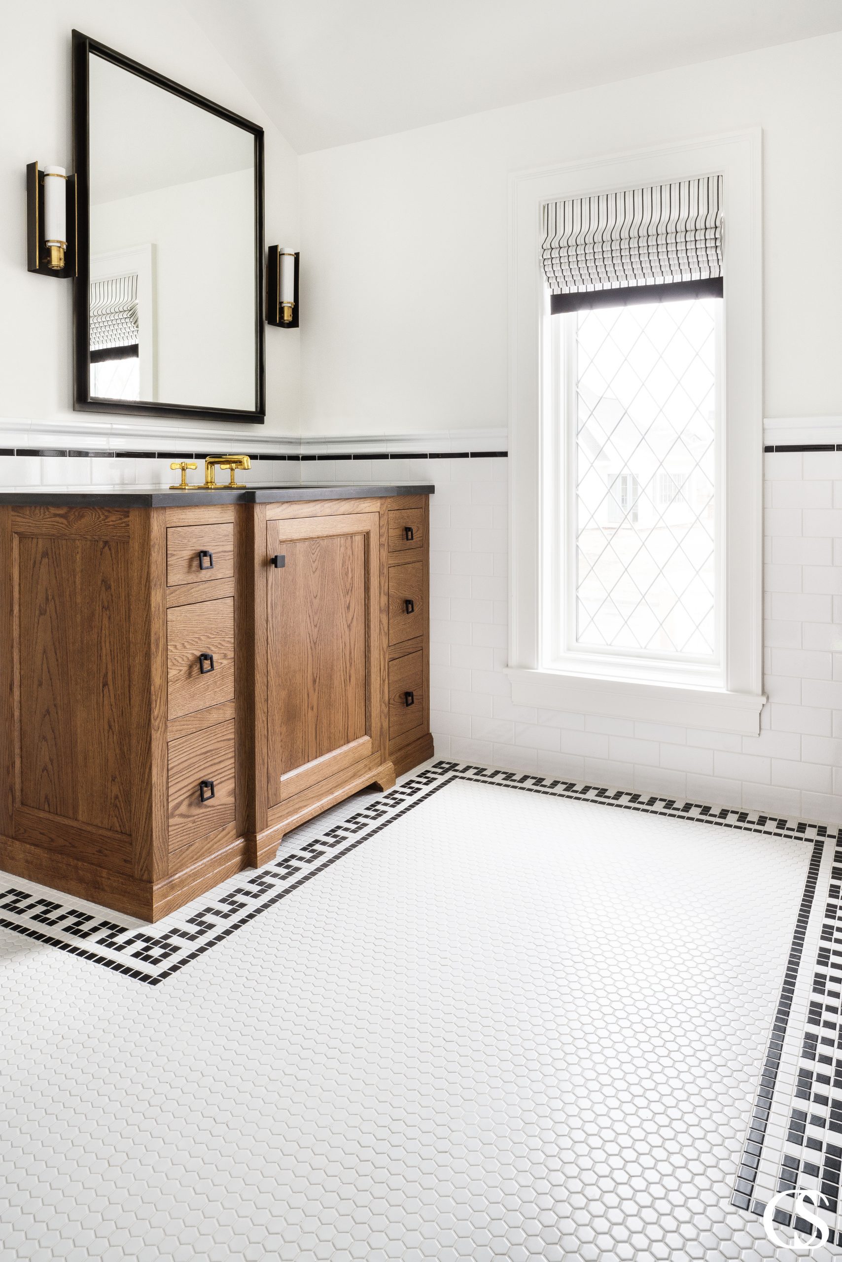 Salle de bain moderne avec carreaux à motifs noirs et blancs