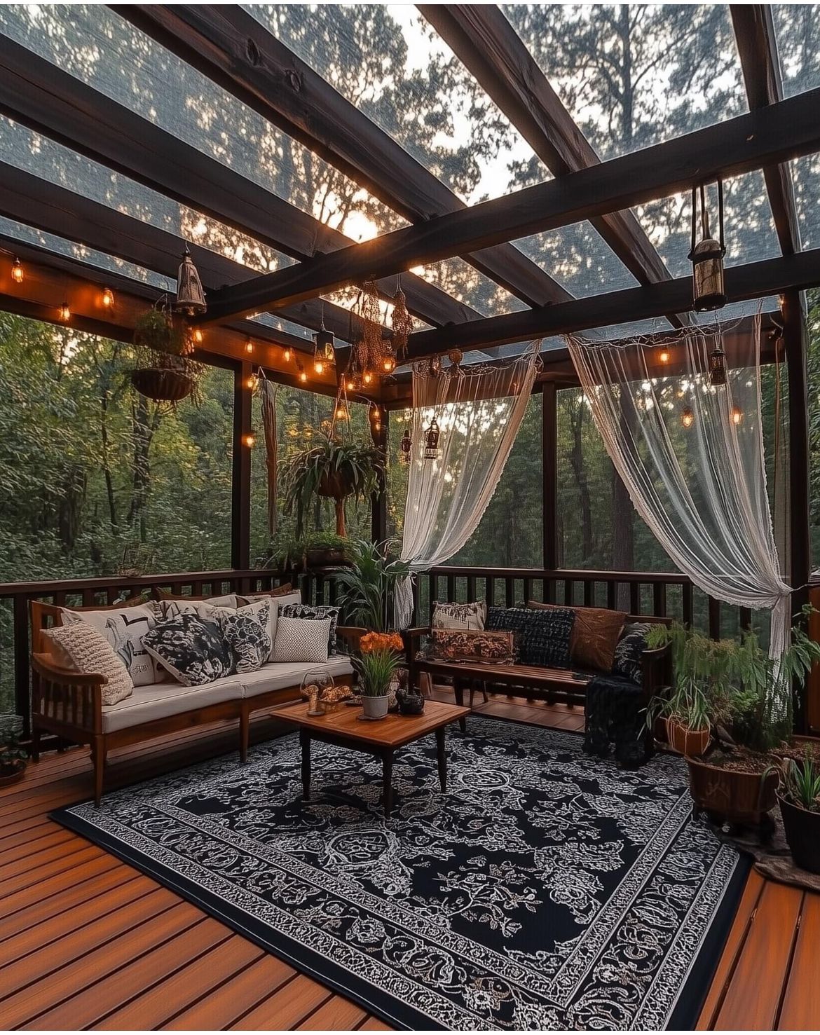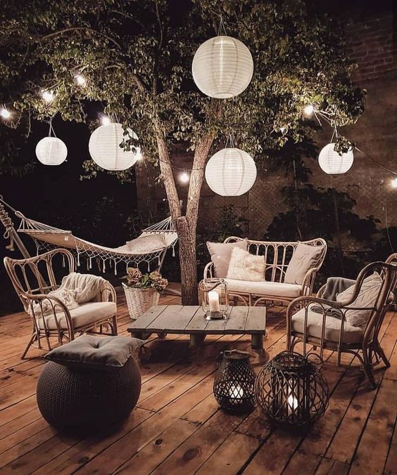 Les tendances actuelles misent sur le mélange des textures naturelles : le bois, le rotin, le lin et les plantes luxuriantes se côtoient pour créer un espace à la fois chic et invitant. On mise aussi sur la lumière douce - lanternes, guirlandes et éclairages solaires - pour prolonger les soirées d'été jusqu'à la dernière étoile.