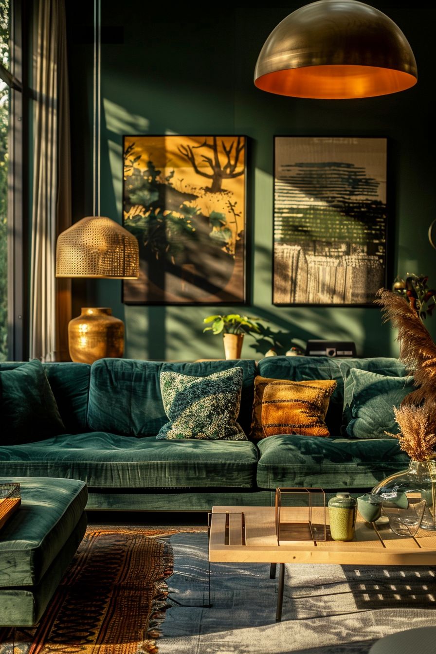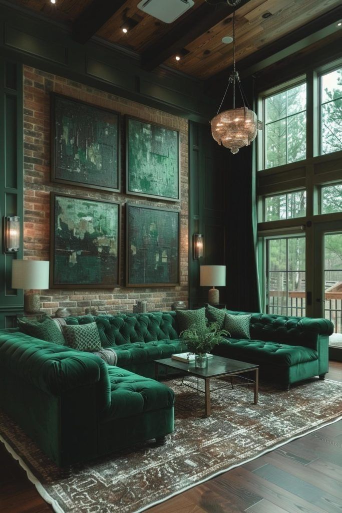 Le vert, c'est la couleur de la nature, du calme et de l'équilibre. Dans un salon, il apporte une touche apaisante tout en créant une atmosphère chaleureuse et élégante. Polyvalent, il se marie aussi bien avec le bois, le beige, le doré ou le noir, s'adaptant à tous les styles - du rustique au contemporain. Choisir le vert, c'est inviter la sérénité et la fraîcheur de la nature directement dans son espace de vie.